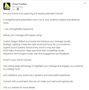 Visual appeal is key, and I truly understand. I and my graphics designer will create detailed infographics, vibrant post visuals, and dynamic carousels that will captivate your target audience and leave a lasting impression.